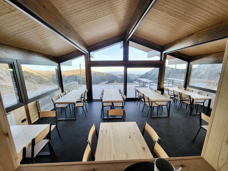 L'espai, situat 2.535 metres d'altitud, s'ha ampliat amb un nou menjador i una nova terrassa, d'uns 50 metres quadrats cadascun, i la cuina també s'ha reformat i ampliaCIÓ. L'actuació ha tingut en compte que l'estètica fos respectuosa amb l'entorn i que els nous equipaments fossin energèticament eficients.
